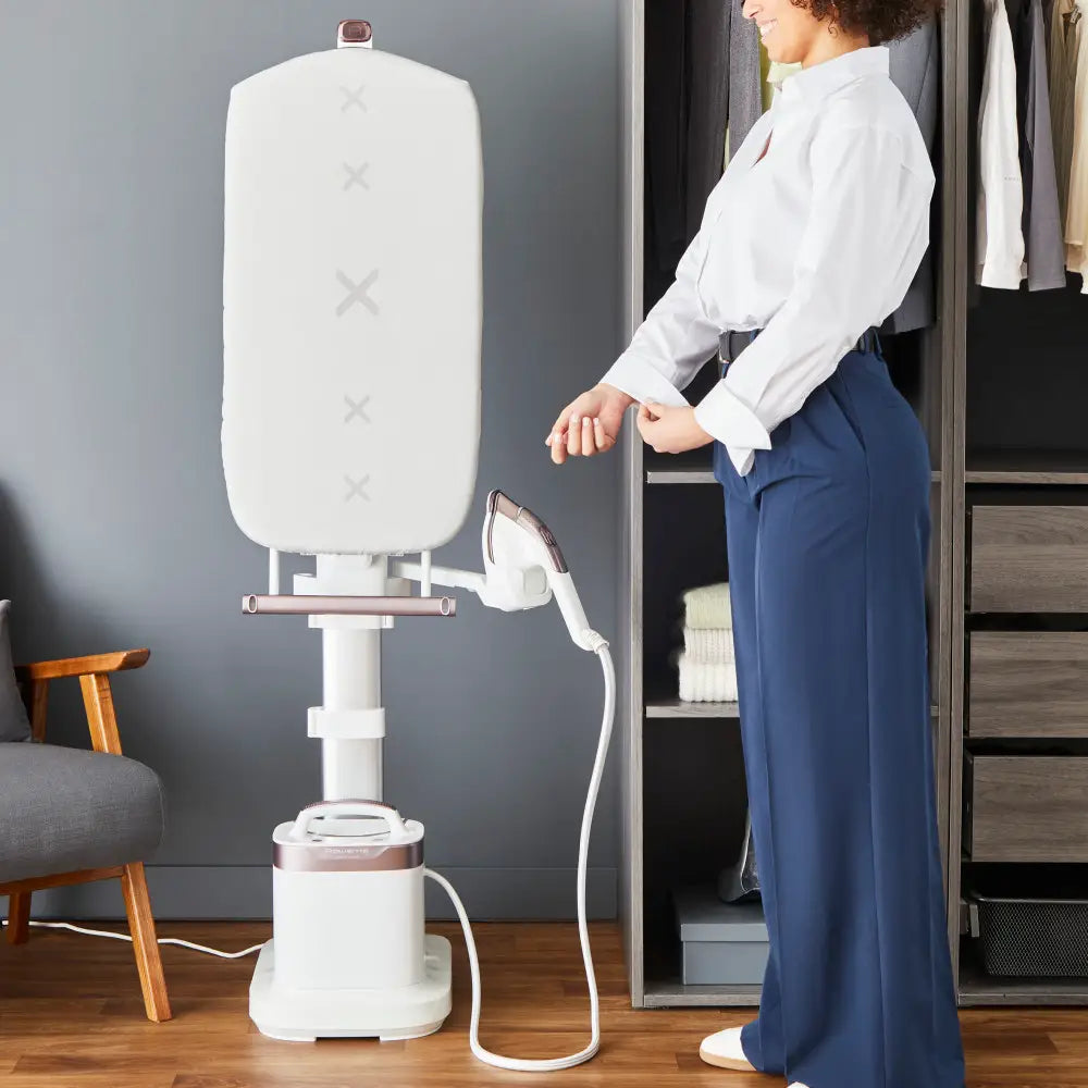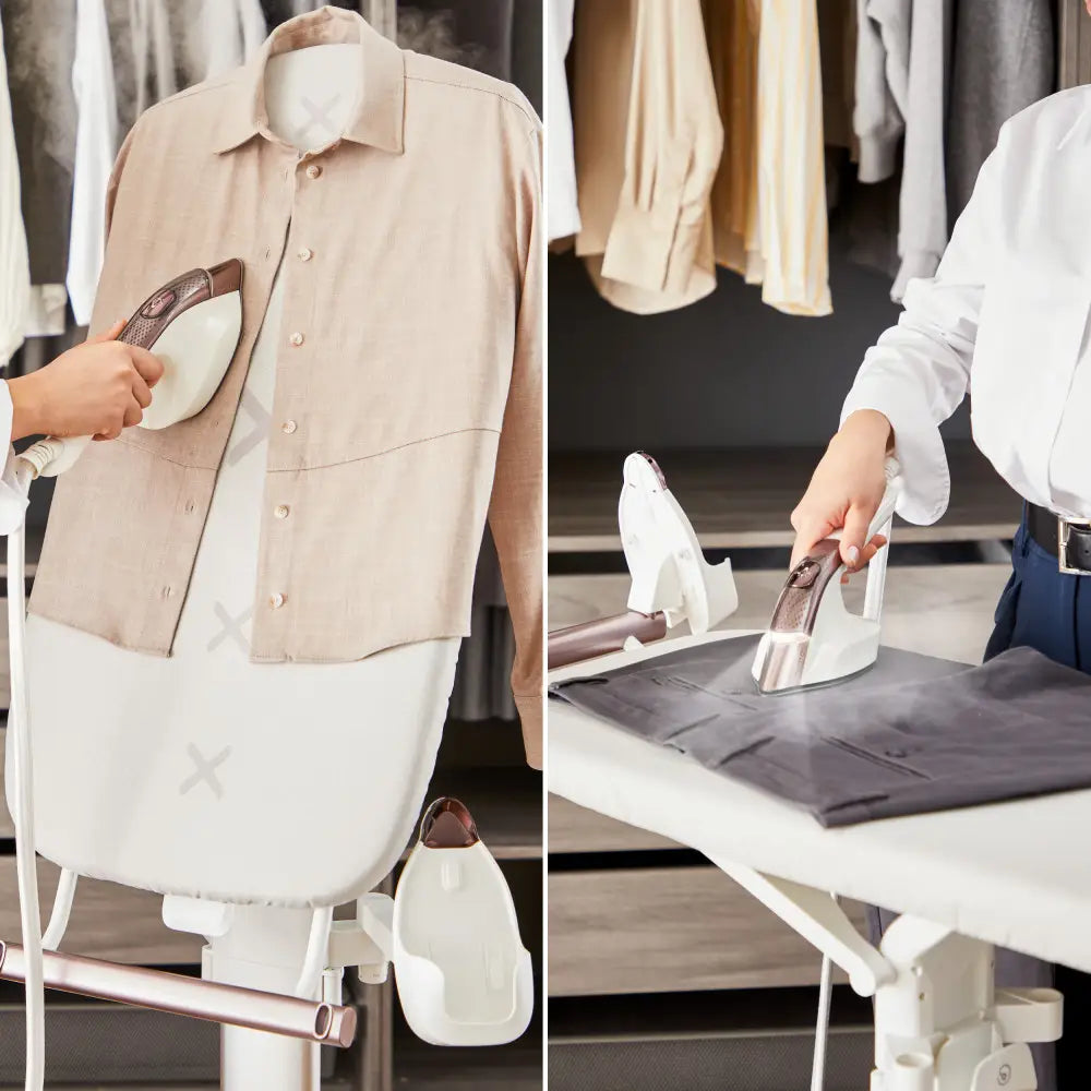 تجربة متكاملة للعناية بالملابس: استمتع بأفضل ما يجمع بين دقة الكي وقوة البخار، مع لوح كي ذكي متعدد الأوضاع يتكيف بسلاسة مع جميع احتياجاتك، من التجديد السريع للملابس إلى جلسات التصفيف الكاملة.