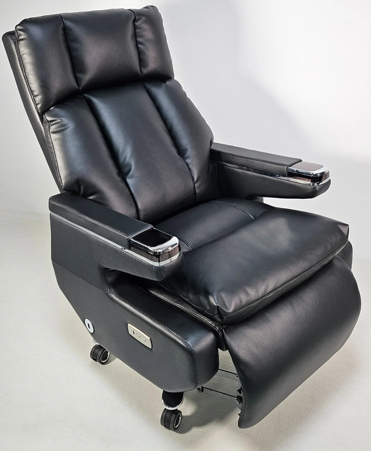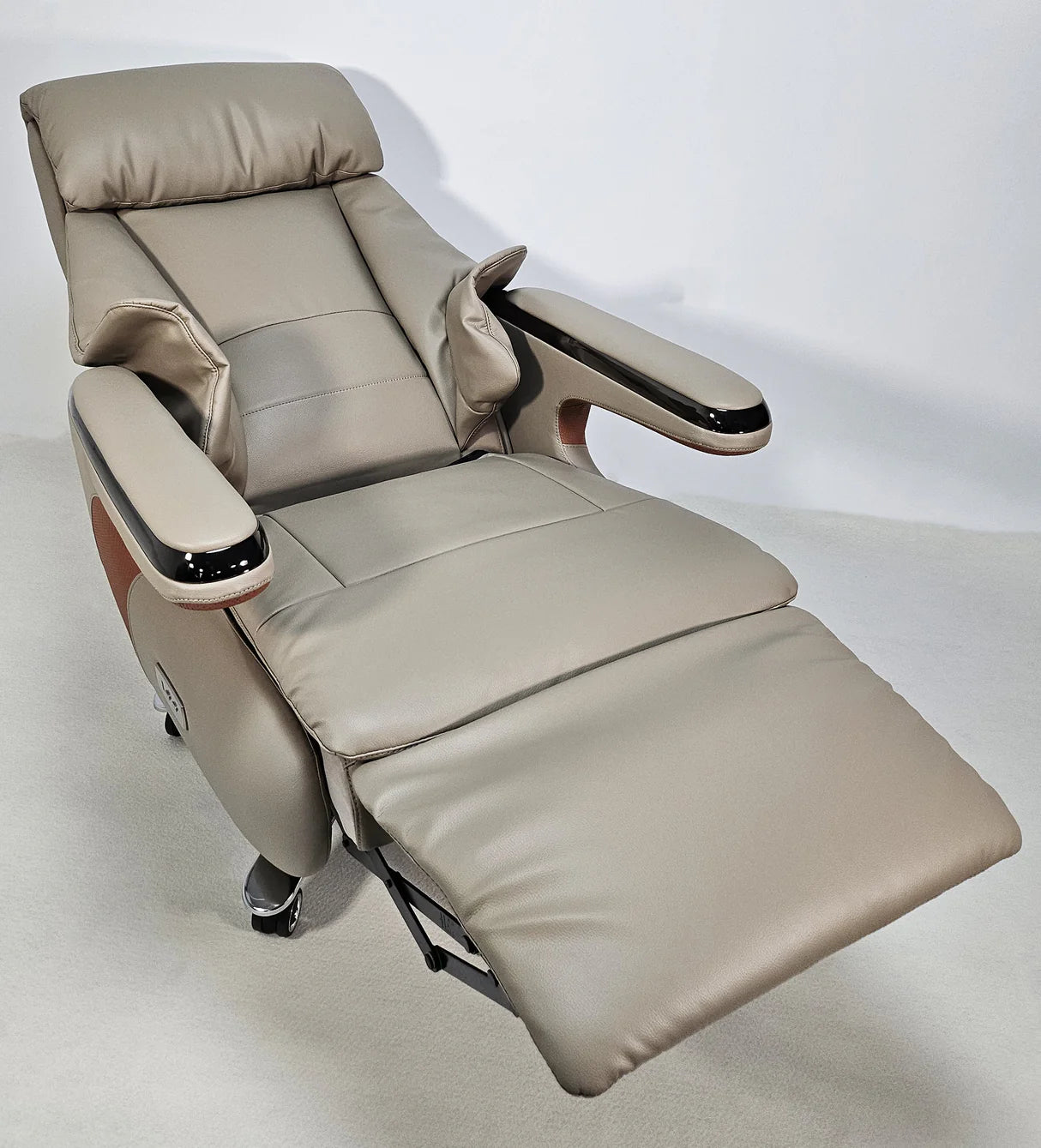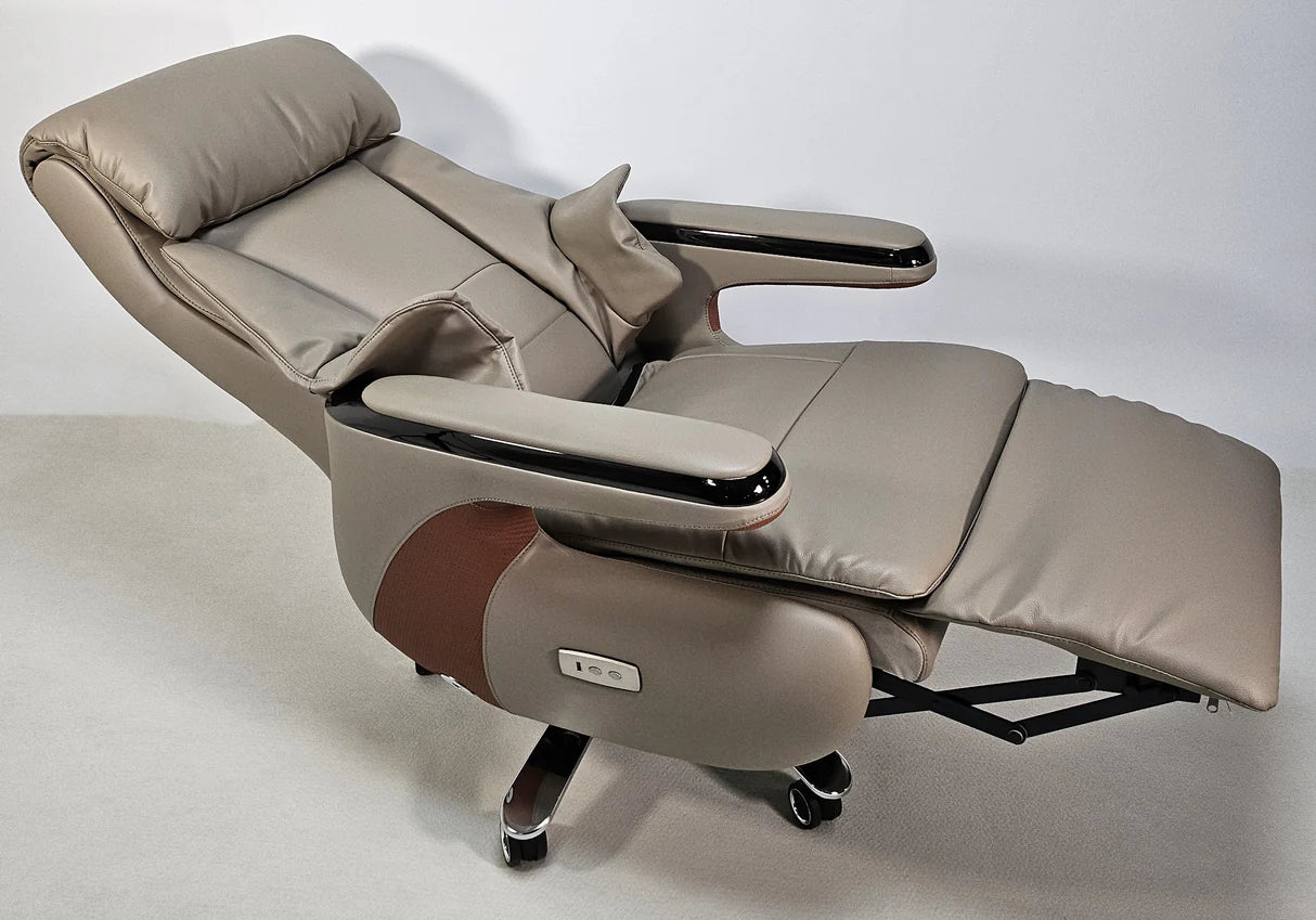 نقدم لكم كرسي A2320 الكهربائي الجديد القابل للإمالة، مكتب جلدي، لعام 2025. مصنوع من مواد عالية الجودة ومُنجّد بجلد صناعي، يوفر هذا الكرسي حشوة ناعمة سخية لتجربة جلوس مريحة. يتميز بآلية إمالة إلكترونية تتضمن مسندًا للقدمين عند تمديده بالكامل. توجد أدوات التحكم في هذه الآلية في مكان ملائم على مسند الذراع الأيمن.
