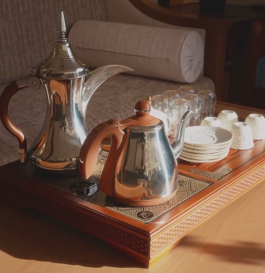 تُستخدم لتقديم القهوة أو الشاي العربي بأناقة وجمال مع أباريق الشاي والفناجين التقليدية، مما يضفي لمسة من الفخامة على أي تجمع.